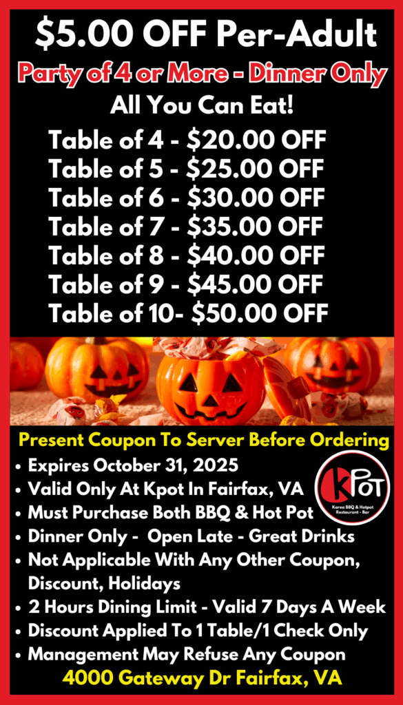 $5.00 OFF Per Person Party of 4, 5, 6, 7, 8, 9, 10++